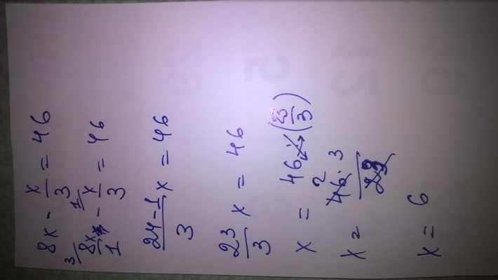 Ребят, я многим помогла, а теперь помогите мне! Нужно решить вот это уравнени (желательно с объяснением) 8х-х/3=46
