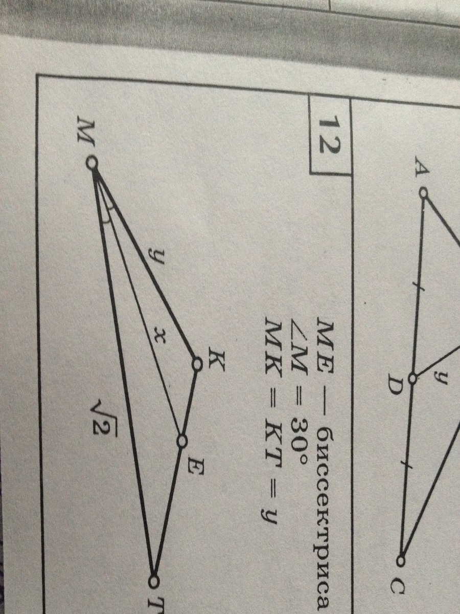 т.к. ME биссектриса,∠KME=15°,∠KEM=180-120-15=45°