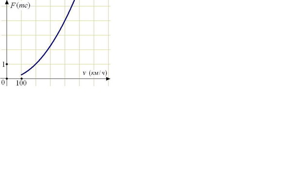Как это решить???? Когда самолет находится в горизонтальном полете, подъемная сила, действующая на крылья, зависит только от скорости. На рисунке изображена эта зависимость для некоторого самолета. На оси абсцисс откладывается скорость (в километрах в час), на оси ординат – сила (в тоннах силы). Определите по рисунку, при какой скорости (в км/ч) подъёмная сила равна 1 мс?