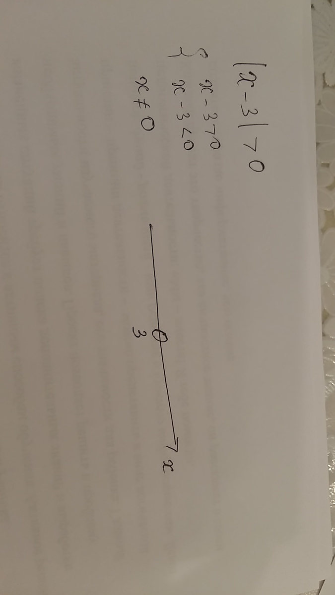 все числа кроме 3, т.к. модуль всегда неотрицателен. а в 3 он равен 0. а надо больше 0