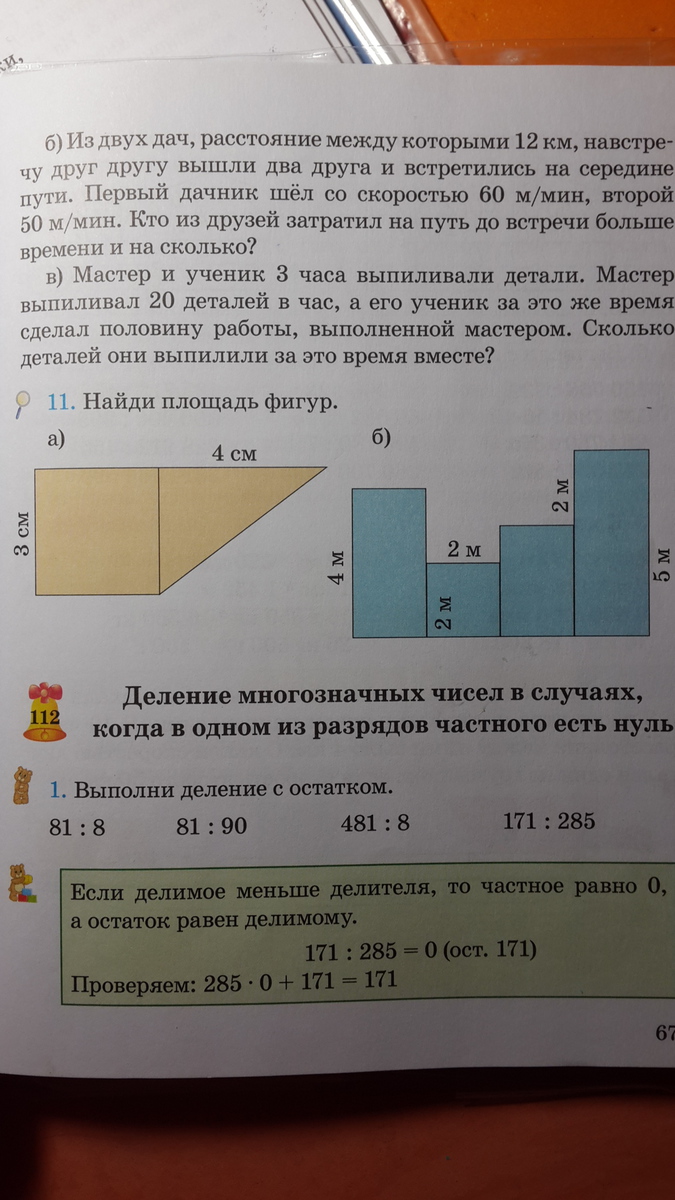 а) и так начнем с 1, желтой, она разделена на 2: квадрат и треугольник ( прямоугольный!) Sквадрата = a*a = 3*3=9 см^2 а Sтреугольника= 1/2(a*b)= 1/2*12=6 См^2 Складываем площади и получаем 15 см^2