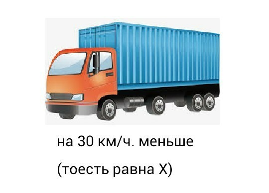 из двух городов, расстояние между которыми 288 км, одновременно навстречу друг другу вышли грузовая и легковая машины. Скорость грузовой машины на 30 км/ч меньше, чем скорость легковой машины. Через 2 часа машины еще не встретились, но через 3 часа они встретились и стали удаляться друг от друга. Оцените скорость грузовой машины.