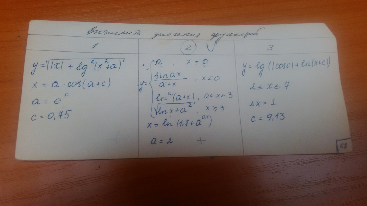 y := ln(abs(cos(c)) + ln(x + c)) / ln(10);