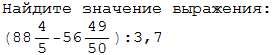 (88 4/5 - 56 49/50): 3,7 = (88 40/50 - 56 49/50) * 10/37 = (4440/50 - 2849/50) * 10/37 =
