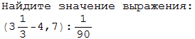 (3 1/3 - 4,7) : 1/90 = (10/3 - 47/10) *90 = 300 - 47*9 = 300 - 423 = - 123
