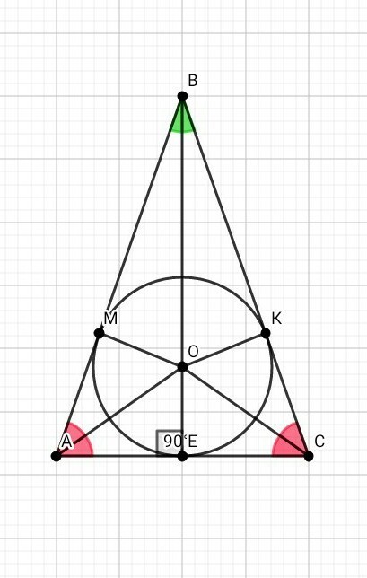 Из этого следует, что ВМ = ВК = 16 , АМ = АЕ = 10 , СК = СЕ = 10 → АВ = ВС = 26 , АС = 20