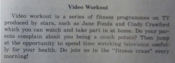 Видео тренировки - эти серия фитнес программ на тв, созданная такими звездами как джейн фонда и синди кроуфорд, которые вы можете смотреть и заниматься дома. Твои родители сетуют на то, что ты лежебока? Тогда хватайся за возможность провести время за просмотром программы полезной для твоего здоровья. Присоединяйся к нам в программе " фитнес мания" каждое утро.