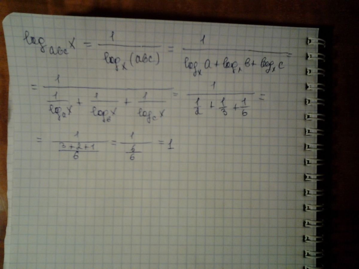 найдите log abc (x), если log a (x)=2, log b (x)=3,log c (x)=6