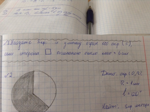 1)т.к. сторона квадрата=6 значит, что диаметр круга = 6, соответственно радиус = 3