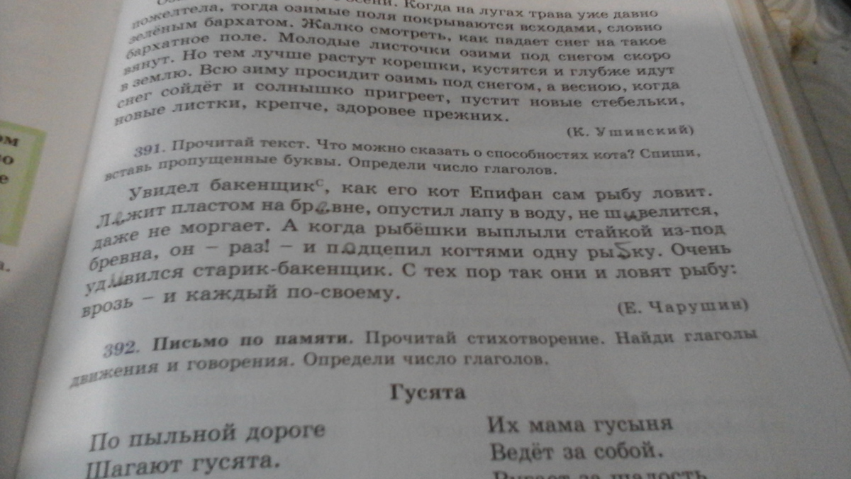 Лежит (лежа-проверочное слово); бревне (бревна); шевелится (шевелить); подцепил (под- приставка, а т.к. не бывает приставки "пад" пишем под); рыбку (рыбок); удивился (диво).