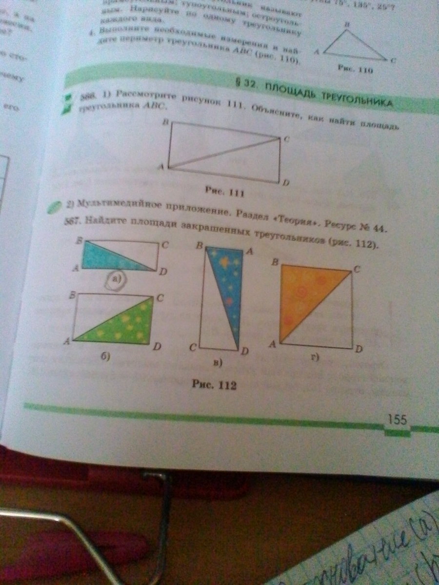 Площадь треугольника: ½ab, измеряй и подставляй. (а- сторонаАВ; b - сторона AD)