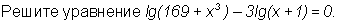 2) lg(169 + x³) -3lg(x+1) = lg1