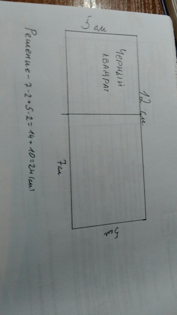реши задачу. На листе бумаги прямоугольной формы длиной 12 см и шириной 5 см нарисован черный квадрат, сумма длин сторон (периметр) которого 20 см. найди площадь белой части листа. Заранее спасибо.