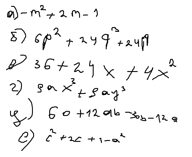 Кто может объяснить разложение на множители алгебра 7 класс, никак не могу понять вообще(( Вот задания например. Напишите объясняя как это делать
