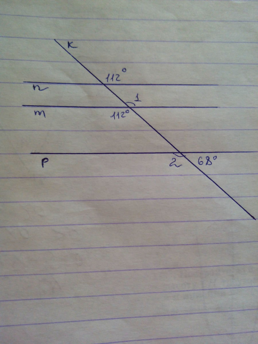 предположим, что n и m параллельны, тогда угол1 равен 112градусов, как соответственные, и угол1 также равен 112градусов как вертикальные, поэтому наше предположение верно.