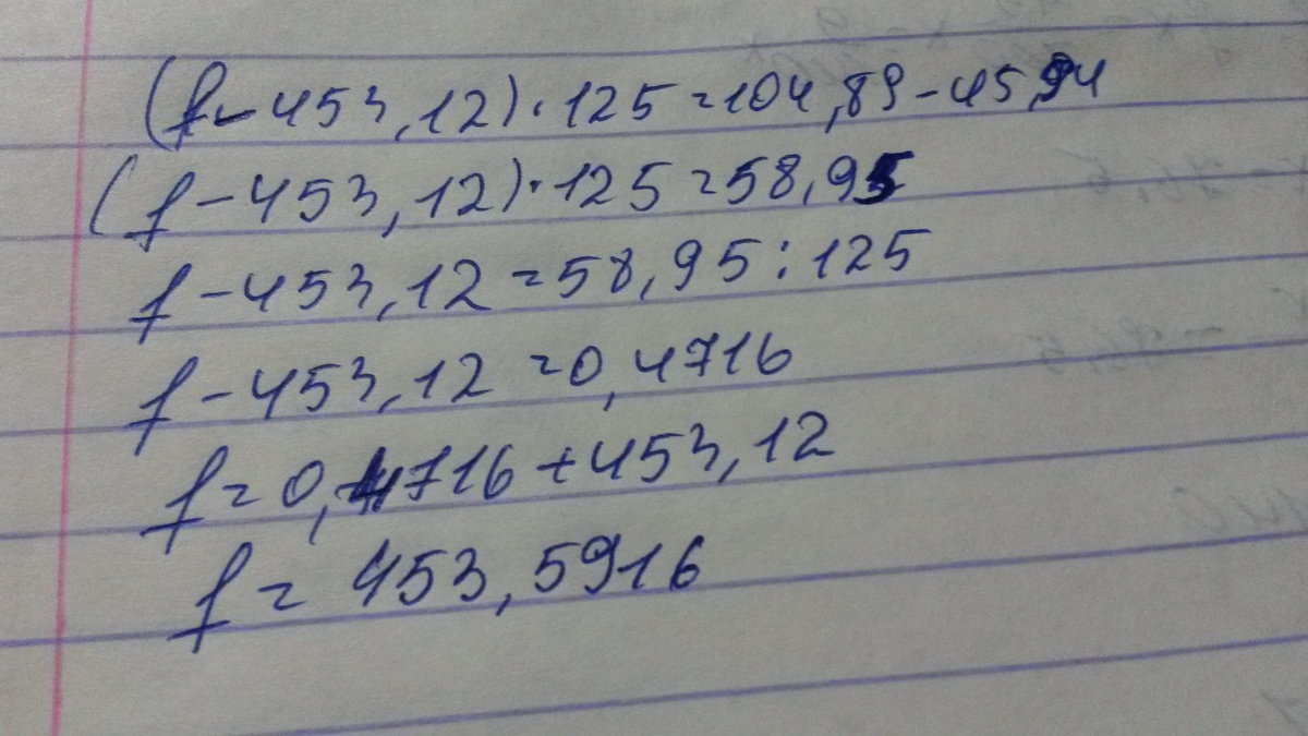 45,94+(f-453,12)*125=104,89 реши пожалуйста
