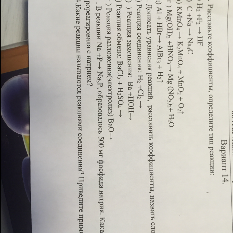 2KMnO4=K2MnO4+MnO2+O2 (разложения)