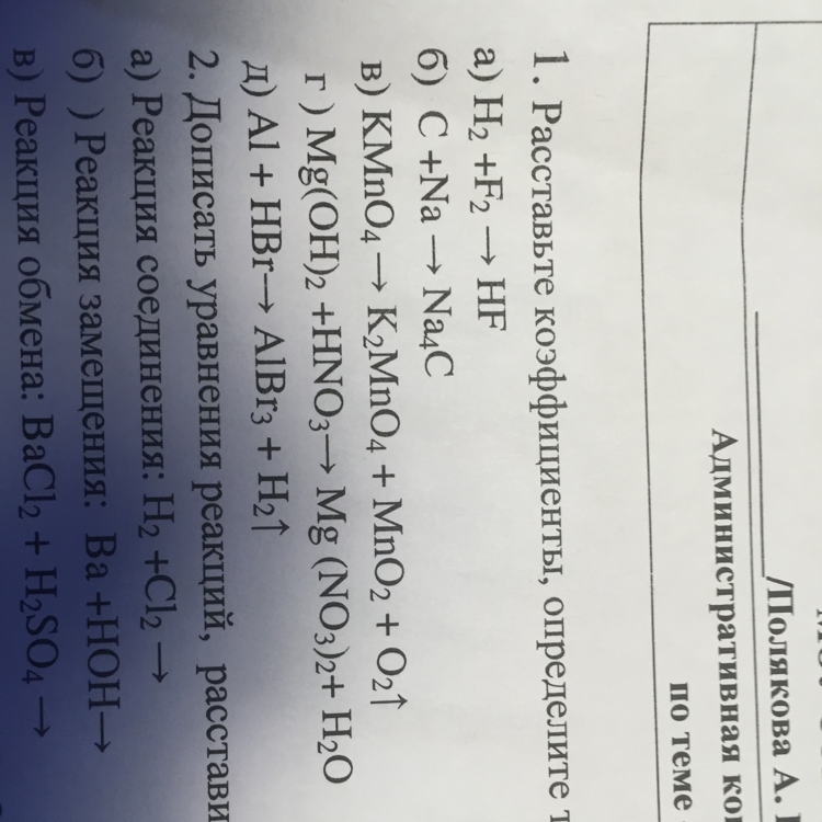 решите пожалуйста,только первое задание.Расставьте коэффициенты и определите тип реакции
