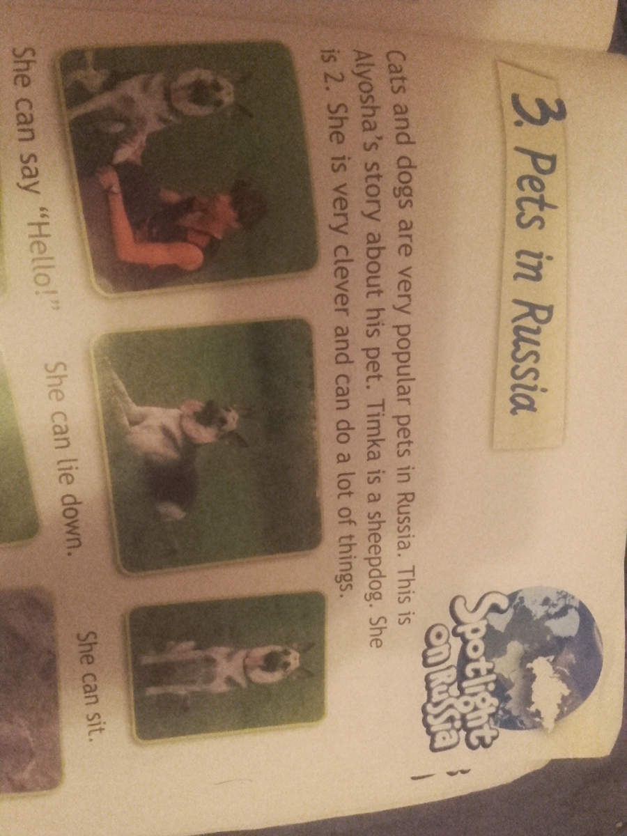 кошки и собаки являются очень популярными домашними животными в России.Это Алеша рассказ о своем питомце. Тимка-это овчарка. Она является 2. Она очень умная и может сделать много вещей,