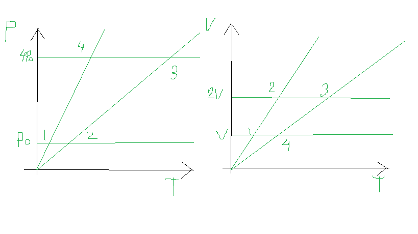 на графике две изохоры и две изобары