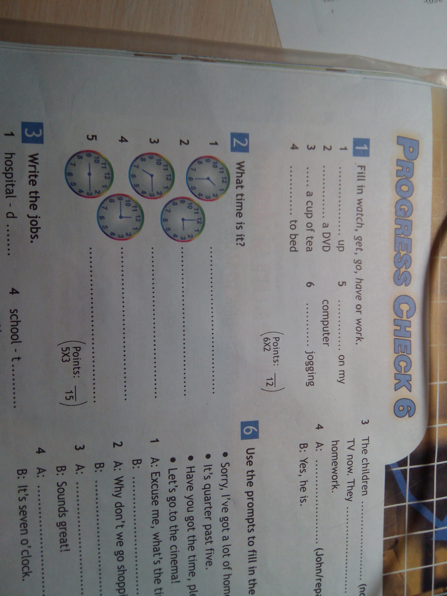 2) It's half past one. It's three o'clock. It's a quarter past seven. It's a quarter to twelve. It's a quarter past nine.