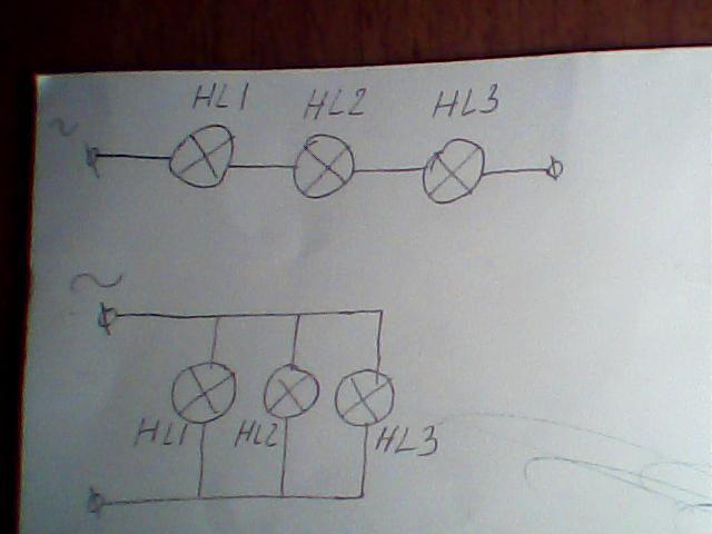 помогите срочно!!!Параллельное и последовательное включение потребителей электрической энергии.(нужны электрические схемы)