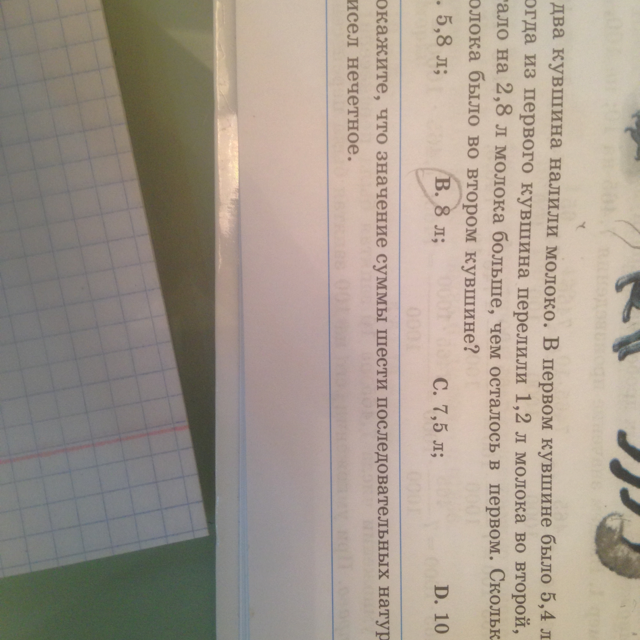 3) 7 - 1,2 = 5,8(л) было во 2-ом кувшине