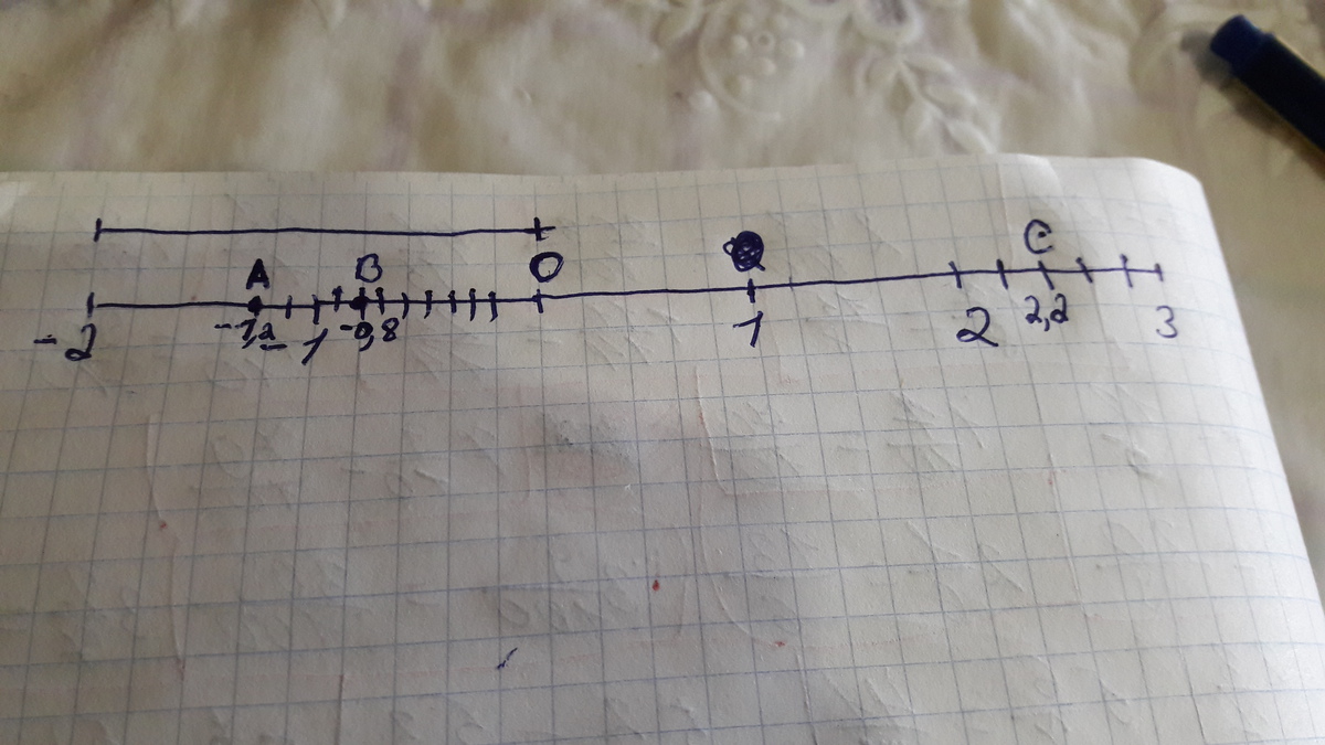 Отметьте на координатной прямой точки А (–1,2), В (–0,8), С (2,2), Д . За единичный отрезок примите длину пяти клеток тетради. 6. Докажите, что у % от 8 равны 8 % от у