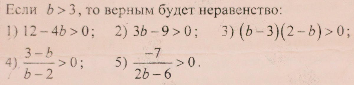сказано,что B меньше трех.из этого следует,что В может быть только от 4 до бесконечности.Подставим вместо В 4.во всех примерах после подставления и проведения простіх арифметических действий видим эти ответы.