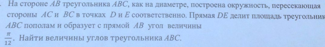 S(EDC)/S(ABC) =cos²∠C⇔cos²∠C= 1/2 т.к. ∠C острый , то cos∠C=1/√2 ;