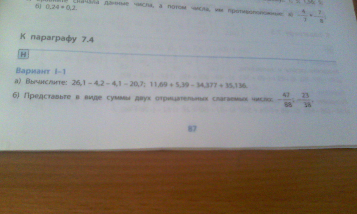 1.1. 26,1-4,2-4,1-20,7= выносим "-" за скобки = 26,1- (4,2+4,1+20,7)=сначала вычисляем внутри скобок=26,1-29,0=-2,9