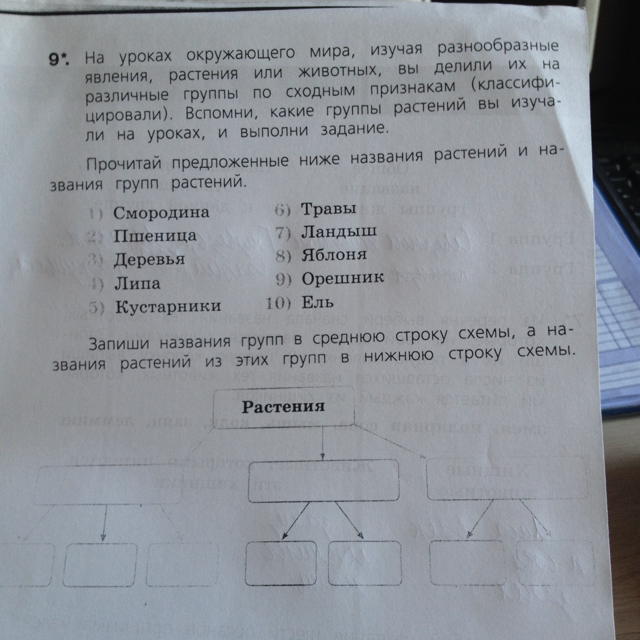 3 основные группы: Растений: 1группа-деревья: ель,яблоня и липа.