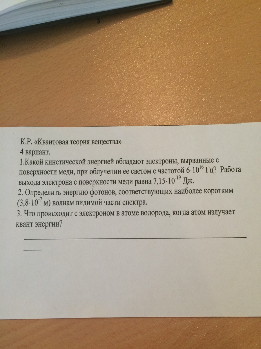 2)Eф=hc/l= 6,6*10^-34 * 3*10^8 / 3,8*10^-7= 5,21*10^-19 Дж