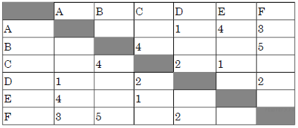 A2 № 3487. Между населёнными пунктами A, B, C, D, E, F построены дороги, протяжённость которых приведена в таблице. (Отсутствие числа в таблице означает, что прямой дороги между пунктами нет.)
