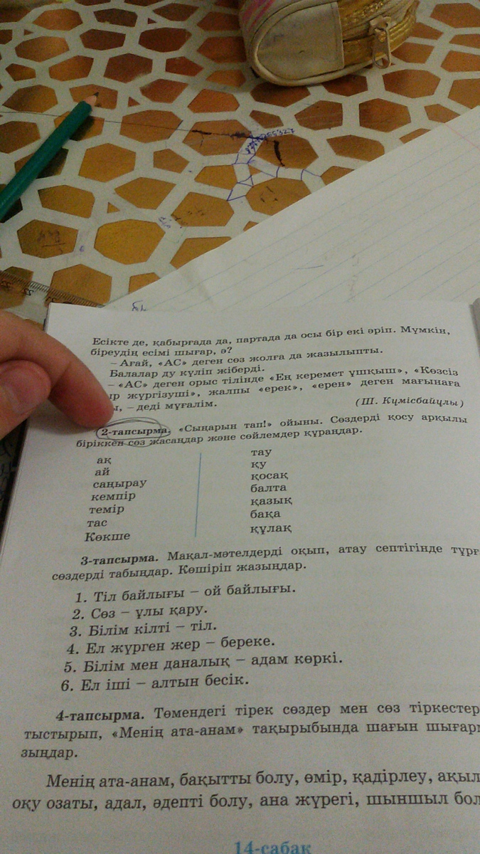 Ағам жұмысында айбалта колданады. (айбалта)