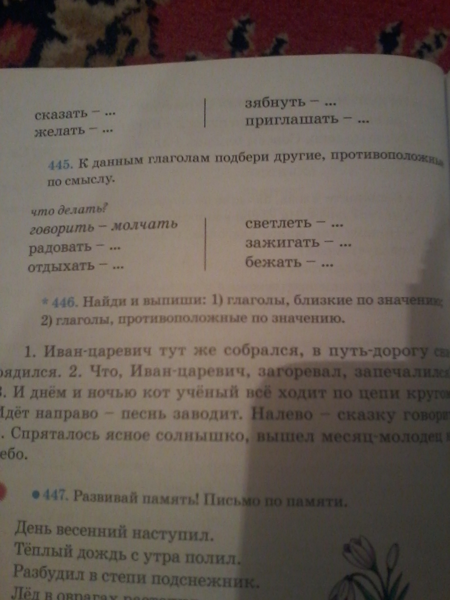 радовать-грустить отдыхать-работать светлеть-темнеть зажигать-тушить бежать-ходить