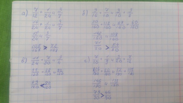 б) 3/16+7/10и3/10+3/8 г) 7/10+1/9и3/20+7/12
