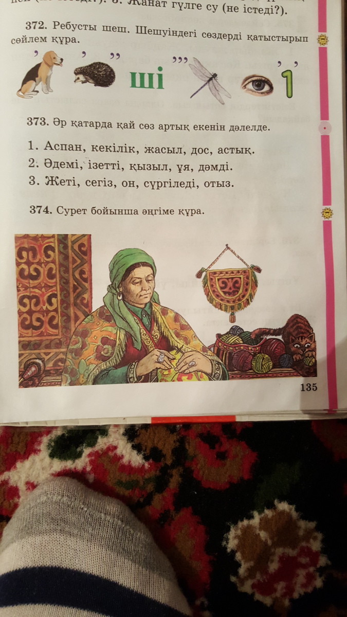 Әжем бес саусағынан өнер тамған жан. Ол жүннен жiп иіріп, тоқыма тоқиды. Бiздерге қыста шұлық тоқып береді.