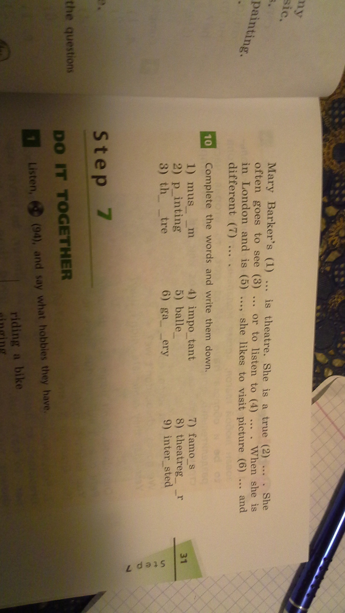 в девятом нужно вставить слова : operas , theatregoer , free, hobby , ballet , museums , galleries .