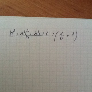 frac{(b+1)^{3}}{b} : (frac{1}{b} + 1) = frac{(b+1)^{3}}{b} :frac{b+1}{b} = frac{(b+1)^{3}}{b} *frac{b}{b+1}=(b+1)^{2} = b^{2}+2b+1