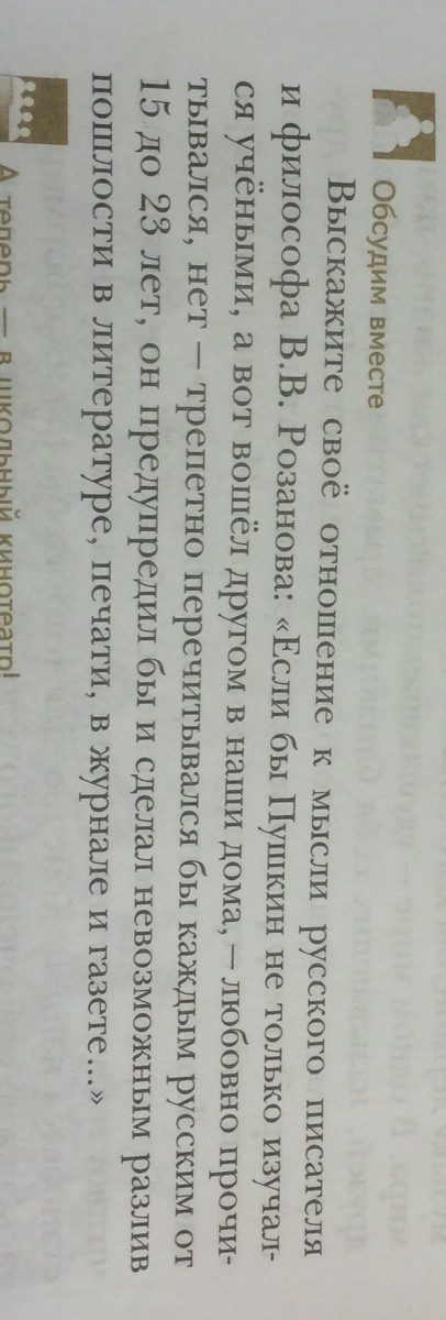 Розанов полностью и прав и я его поддерживаю. Однако, многие не любят Пушкина, придумывают отговорки, лишь бы не читать. Я так же считаю что не стоит насильно заставлять ребенка читать. Это не правильно. Он должен придти к этому сам. Толстой, Пушкин, Достоевский, и другие писатели, должны читаться добровольно.