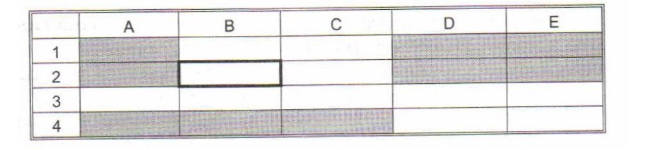 Задание 3: активная ячейка - В2, выделено А1:А2,D1:E2,А4:С4 следовательно ответ А