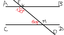 ∠АКО + ∠ЕМС = 180°,значит эти два угла - односторонние.При пересечении двух параллельных прямых секущей,сумма односторонних углов равна 180°.чтд