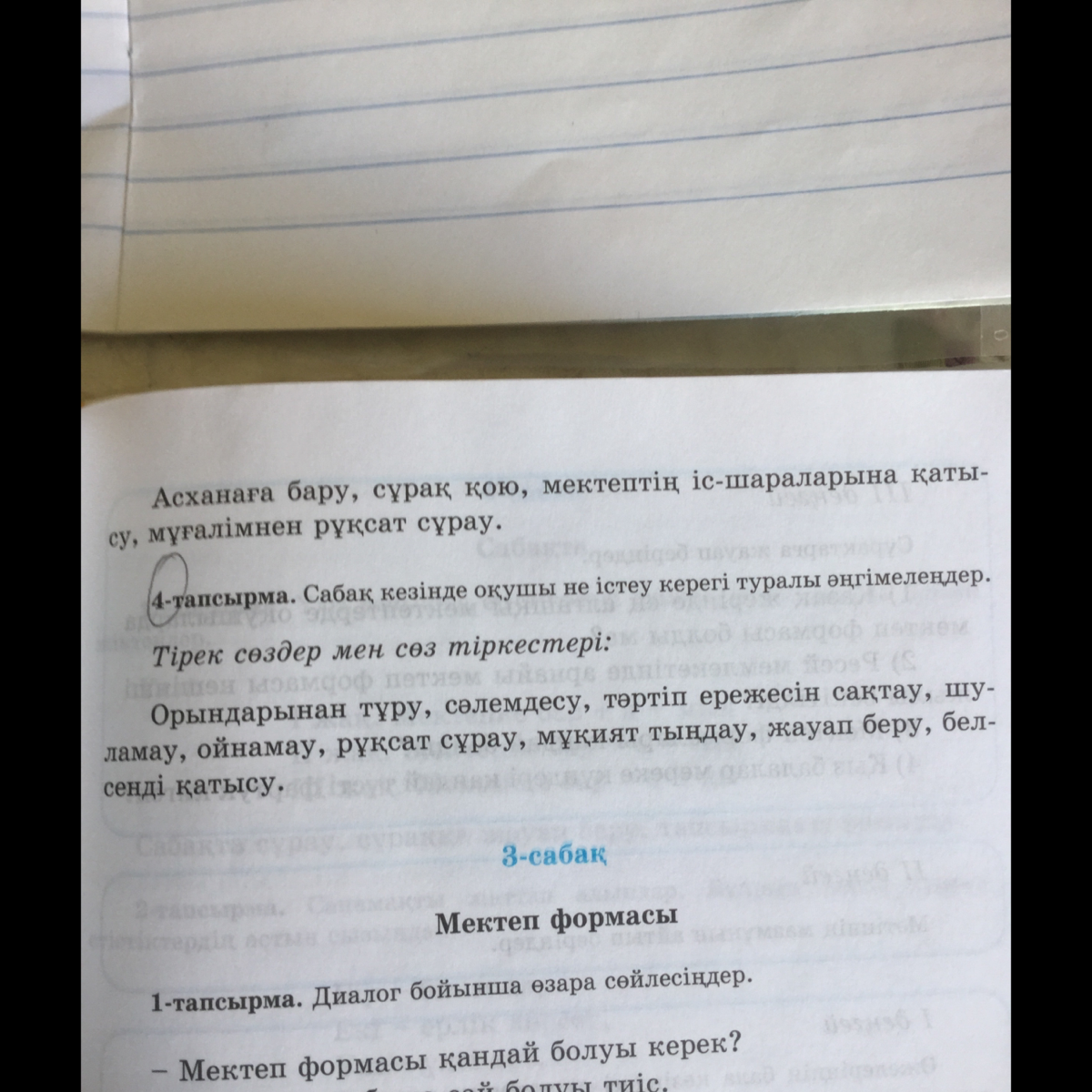 Мектепте оқушылар ең алдымен тəртіп ережесін сақтау керек. Мұғалім сыныпқа кіргенде шуламай ,орындарынан тұрып сəлемдеседі. Сабақты мұқият тыңдап, сабаққа белсенді қатысып, мұғалім қойған сұрақтарға жауап беру керек. Шұғыл жағдай болса мұғалімнен рұқсат сұрап шығу керек