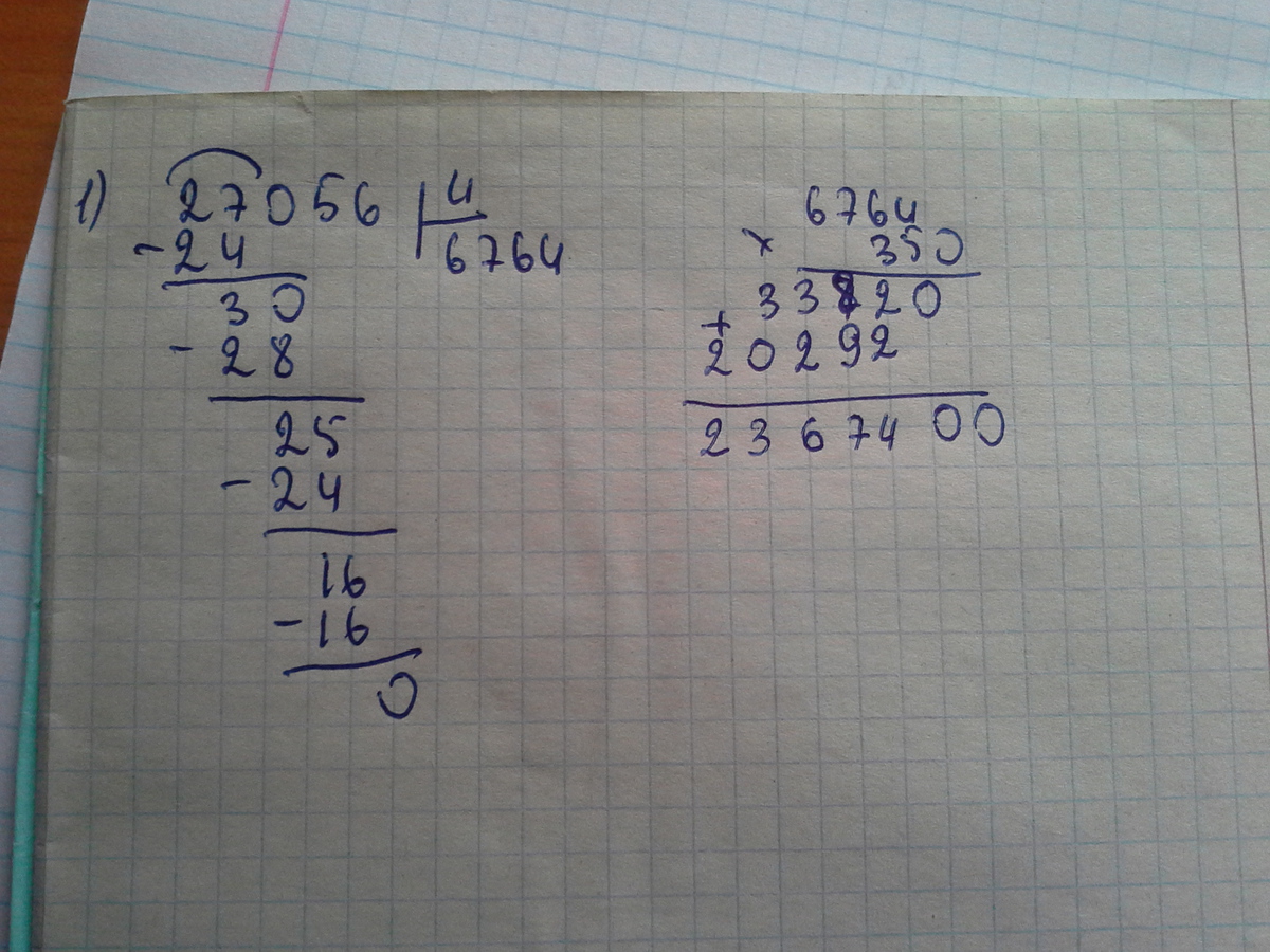 не знаю, загрцзтлось ли фото или нет, но: при умножении получится 2367400. а при делении 6764