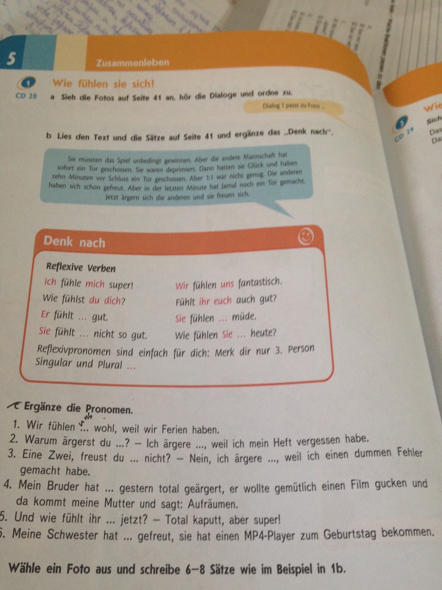 1)uns 2)dich mich 3)dich mich 4) sich 5)euch 6)sich