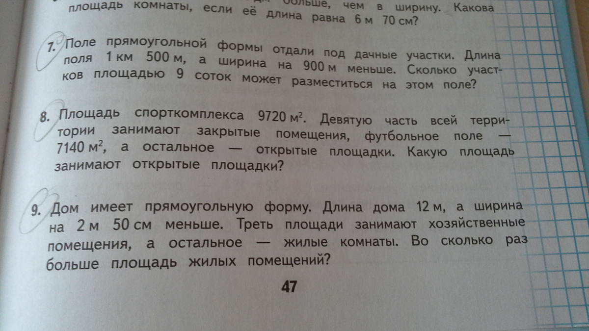 7. ширина:1,5км-0,9км=0,6км; площадь: 0,6*1,5=0,9км^2; 1сотка-100м^2; тогда всю площадь / 9*1сотка=900000м^2/9*100