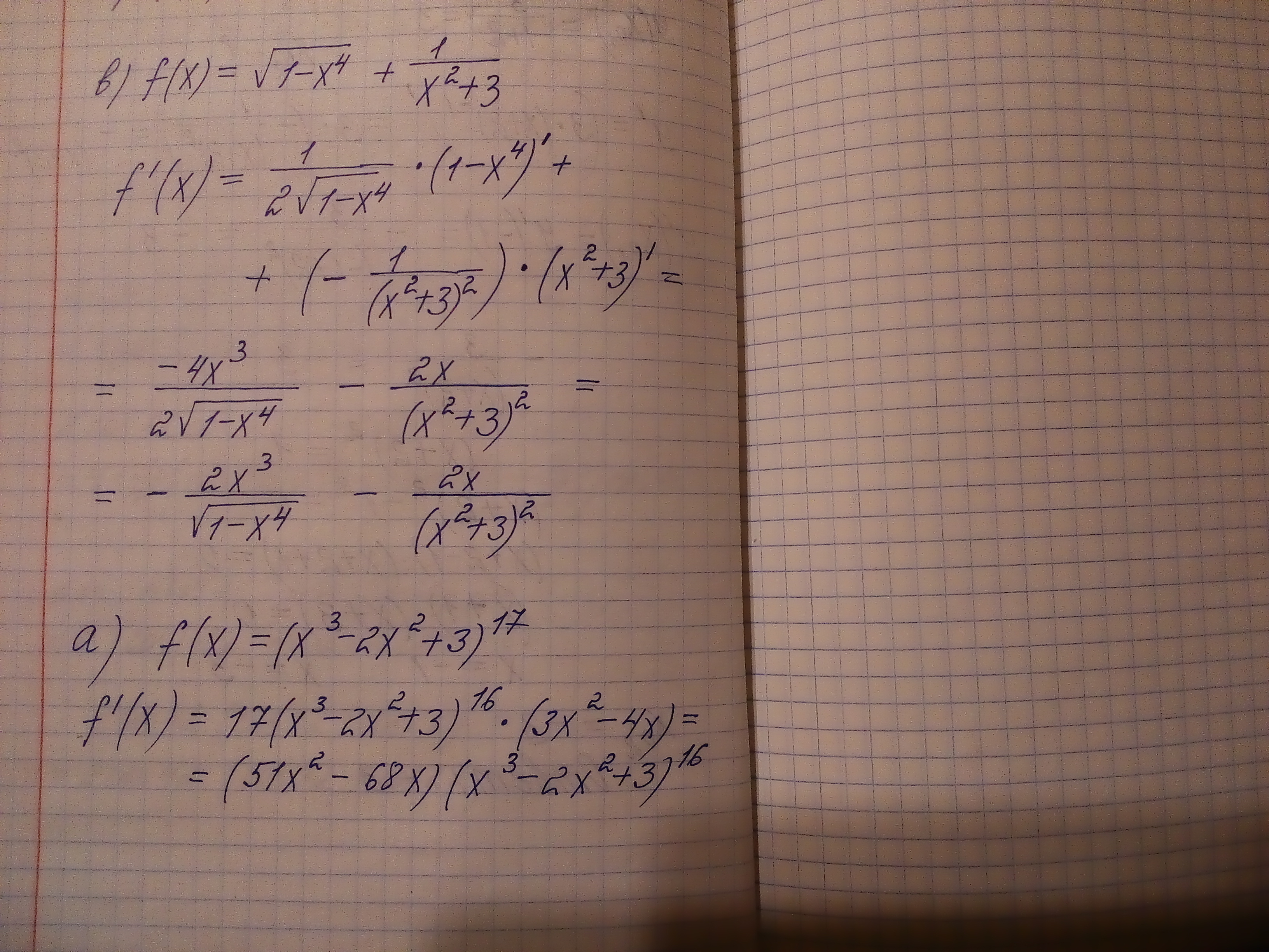 а)f(x)=(x^3-2x^2+3)^17