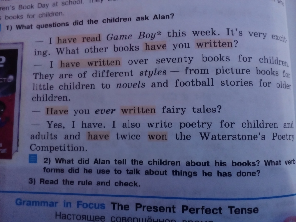 -Да, писал.Я также писал стихи для детей и взрослых, и два раза выиграл в Ватерстоунском Поэтическом Конкурсе.