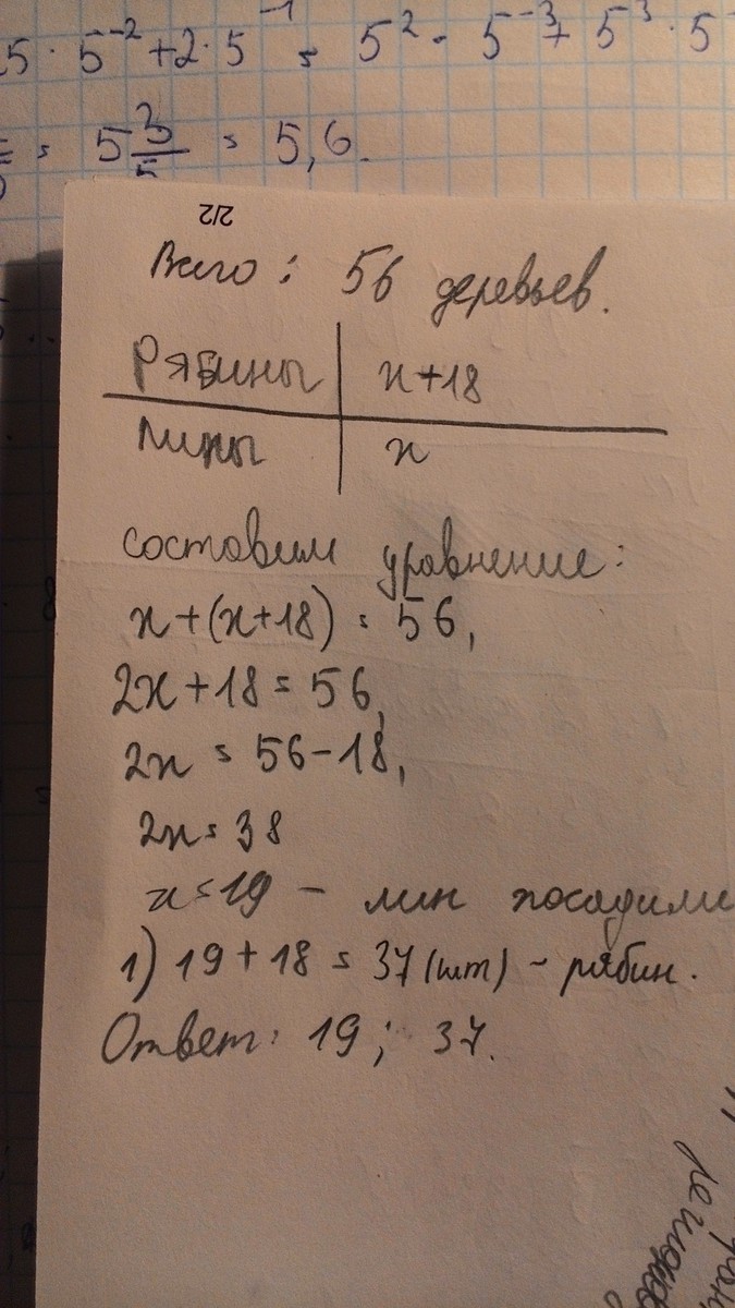 Пусть х - липы, х+18 - рябины . Зная, что всего деревьев 56, сост.уравнение